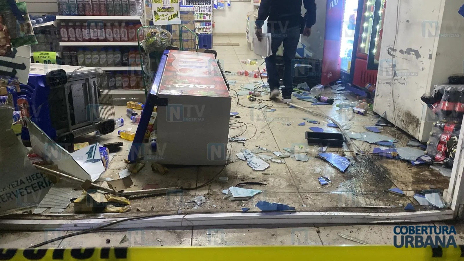 El hecho se reportó a las 19:21 horas del 28 de febrero de 2026 en el cruce de las calles Amado Nervo y Jiménez. Al arribar elementos de la Policía Vial, localizaron la ventana del negocio rota, así como refrigeradores y productos tirados en el interior.